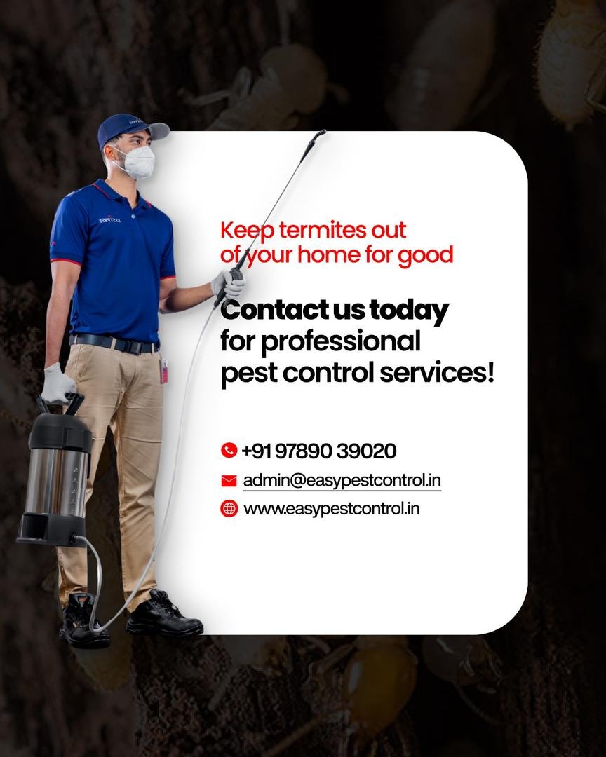 Easy Pest Control – Coimbatore Branch Your trusted pest control experts in Coimbatore! Since 2017, we have been protecting homes, apartments, offices, and commercial spaces from cockroaches, termites, bed bugs, rats, mosquitoes, and more. Our trained technicians use safe, eco-friendly methods approved by WHO and the Indian Pest Control Association. We proudly serve all areas of Coimbatore, including Gandhipuram, Peelamedu, RS Puram, Singanallur, Saibaba Colony, Saravanampatti, and nearby locations. 🛡️ 100% Service Guarantee 🌱 Safe for Kids & Pets 🏠 Residential & Commercial Services 📞 Same-Day Service Available Call now for a free inspection or book your service online!